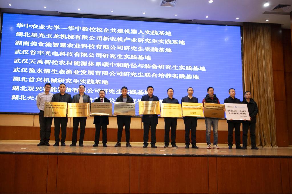 会上,太阳成tyc9728集团为湖北星光玉龙机械有限公司等9个实践基地授牌,为中联农业机械股份有限公司副总裁高一平等31位企业家颁发企业行业导师聘书。