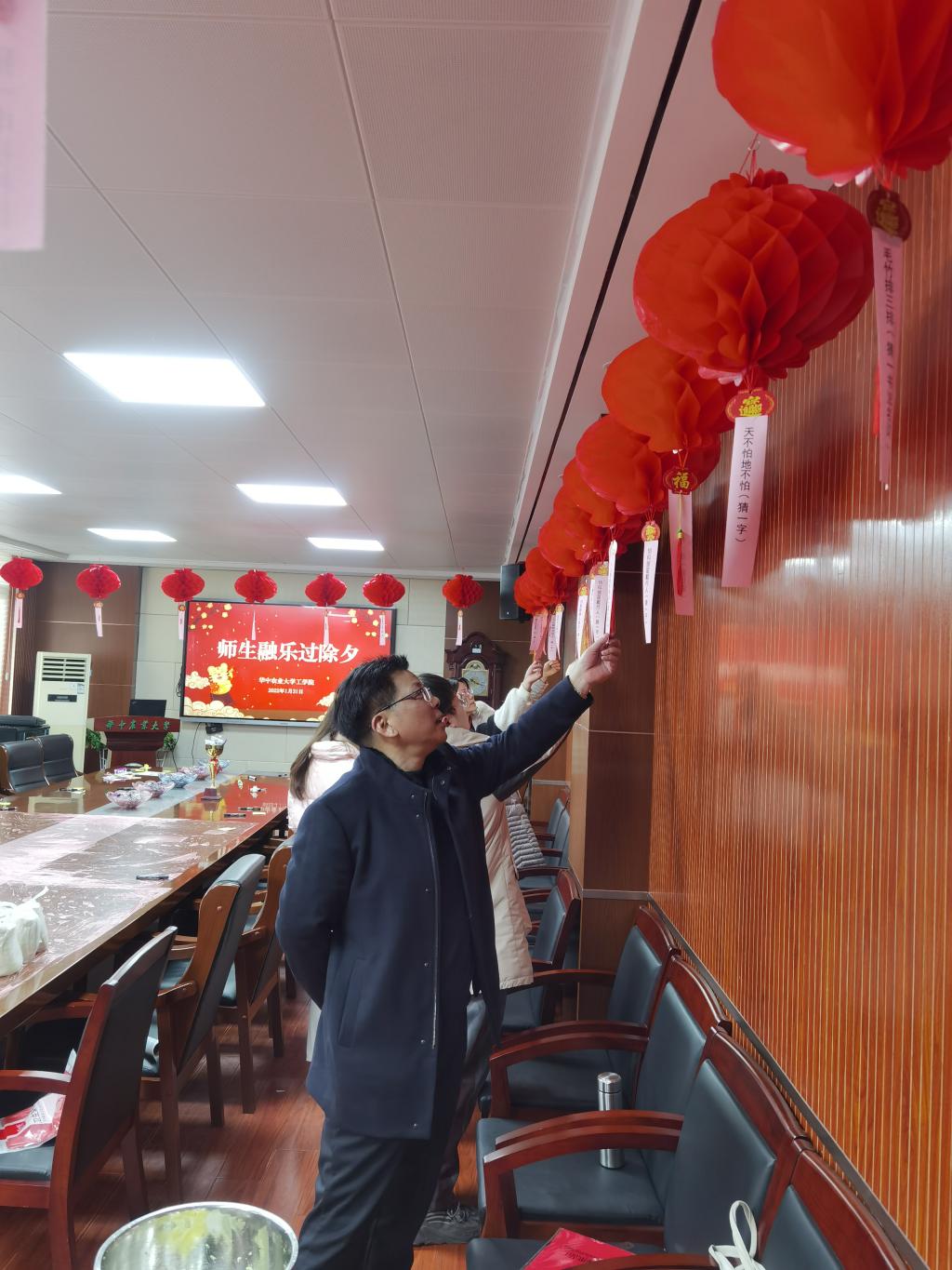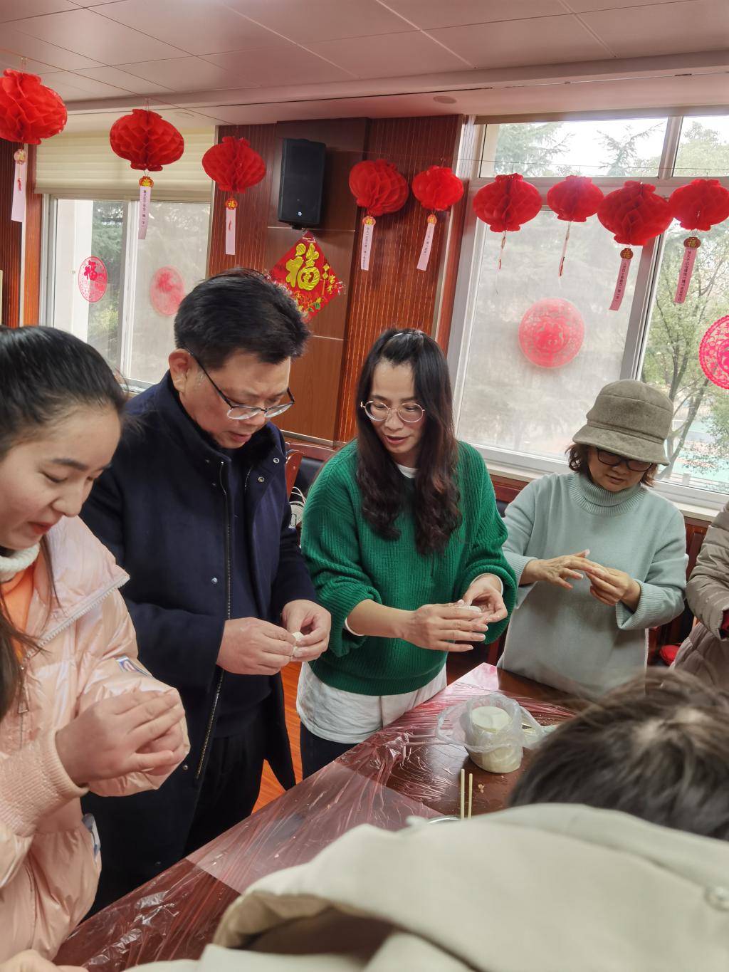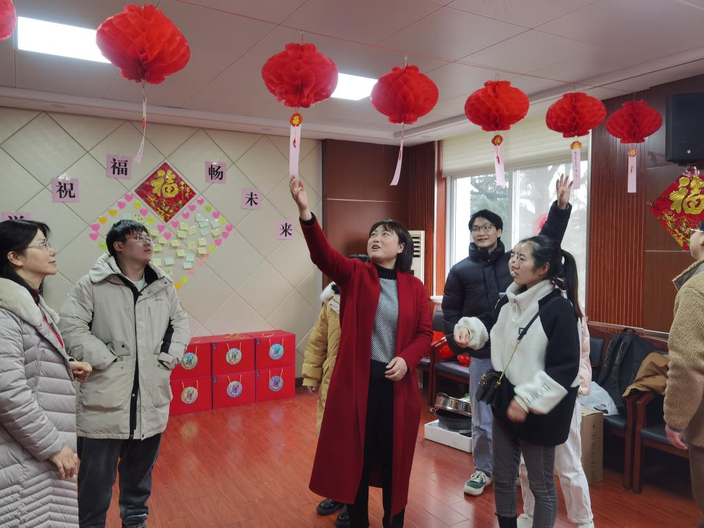 活动现场,师生们纷纷在“送祝福·畅未来”心愿墙上贴上对祖国、学校、老师、父母和自己的祝福,内心充满了对未来的期待;在“猜灯谜·迎新年”区域,师生们对着一个个灯谜,饶有兴趣地破译谜面;还有师生在包饺子诉情谊,师生融乐的交流声与央视直播的音乐声相互映衬,现场的氛围格外温馨热烈。