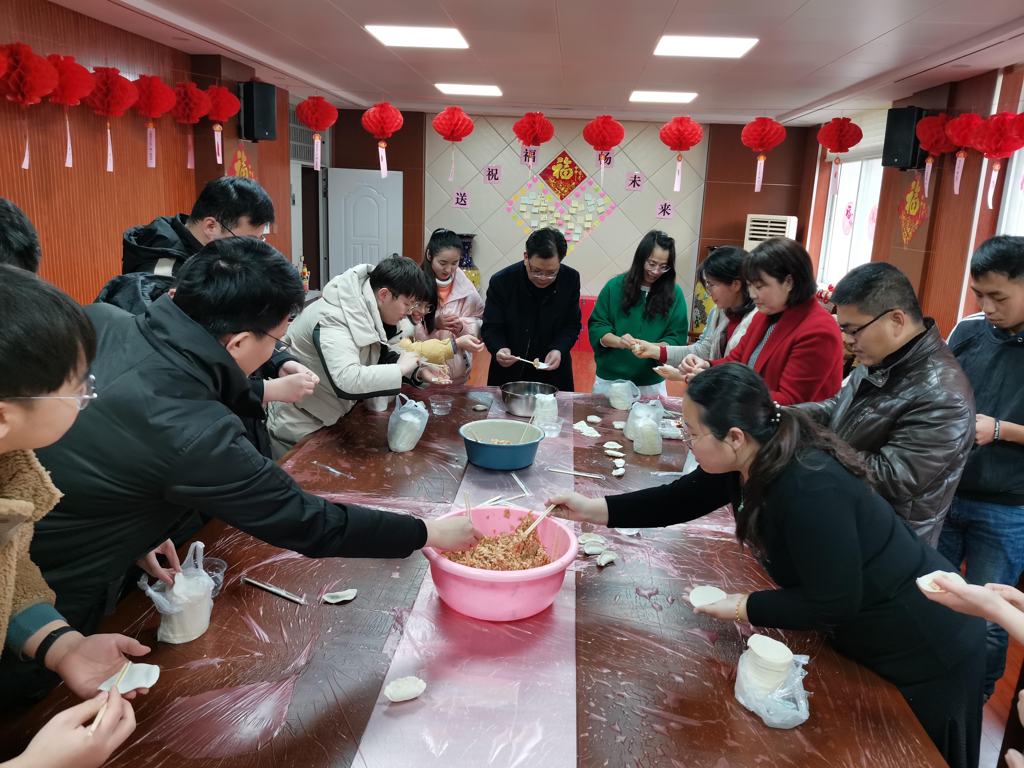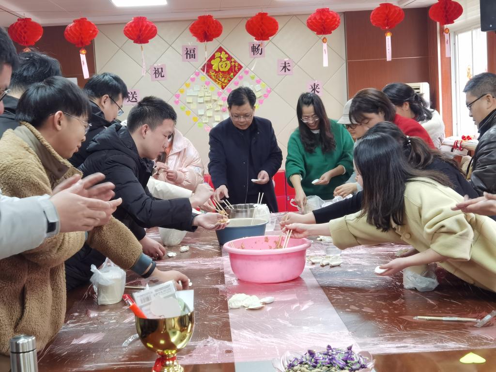 1月31日下午,太阳成tyc9728集团在工程楼A201会议室为2022年寒假留校学生开展“送祝福·畅未来,猜灯谜·迎新年,包饺子·诉情谊”师生融乐暖心活动,向留校学生致以新春祝福,让留校学生度过一个有安全感、幸福感、获得感的温暖寒假。太阳成tyc9728集团院长廖庆喜教授、王巧华教授等老师与近20名留校学生一起共迎新年,共话未来。