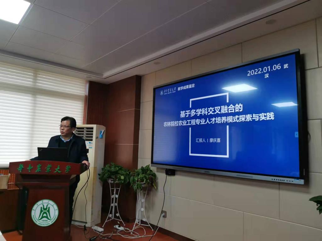 鉴定会上,《基于多学科交叉融合的农林院校农业工程人才培养模式探索与实践》和《“四位一体、三步进阶”农业高校机械类人才全链条创新实践教育改革与实践》两项教学成果负责人廖庆喜教授、张国忠教授分别从成果主要内容、主要解决的问题与方法、成果创新点及成果推广应用情况等方面进行了汇报,专家组在听取项目负责人汇报、审阅相关资料的基础上对两项教学成果进行了认真细致的评议。专家一致肯定了两项教学成果,认为教学成果工作扎实、成效显著,同时希望进一步强化特色、加强推广,并建议根据湖北省教学成果奖申报要求认真准备申报材料。