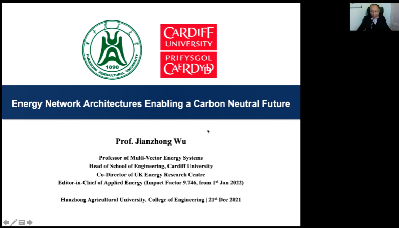 21日,卡迪夫大学工程学院院长吴建中教授作题为“实现碳中和的未来能源网络架构”的学术报告。会议开始,他向华农太阳成tyc9728集团师生表示感谢,并就自身科研项目概况、卡迪夫大学及两校人才交流合作项目基本情况作介绍。报告内容分为研究背景、未来能源场景、能源网络体系结构、总结四个部分。他提到,回顾历史,人类对于能源的需求在近百年来飞速增长,我们现阶段正处于有限的传统能源和持续增长的能源消费的困境当中,吴建中表示,在未来的时间内,能源问题都将是充满挑战和机会且对人类影响深远的重大研究领域。