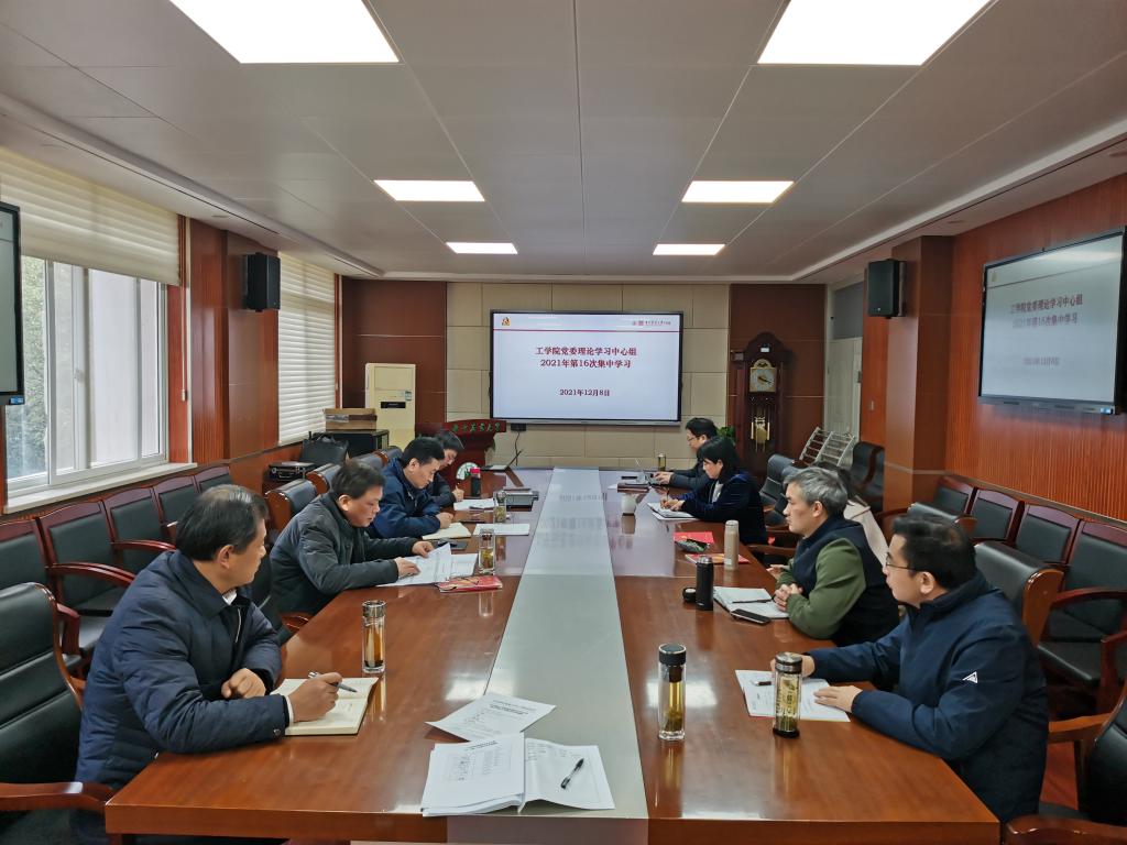 (通讯员高亮)12月8日,太阳成tyc9728集团党委理论学习中心组在工程楼A201会议室集中学习研讨十九届六中全会精神。党委书记明庭庆做专题学习报告。