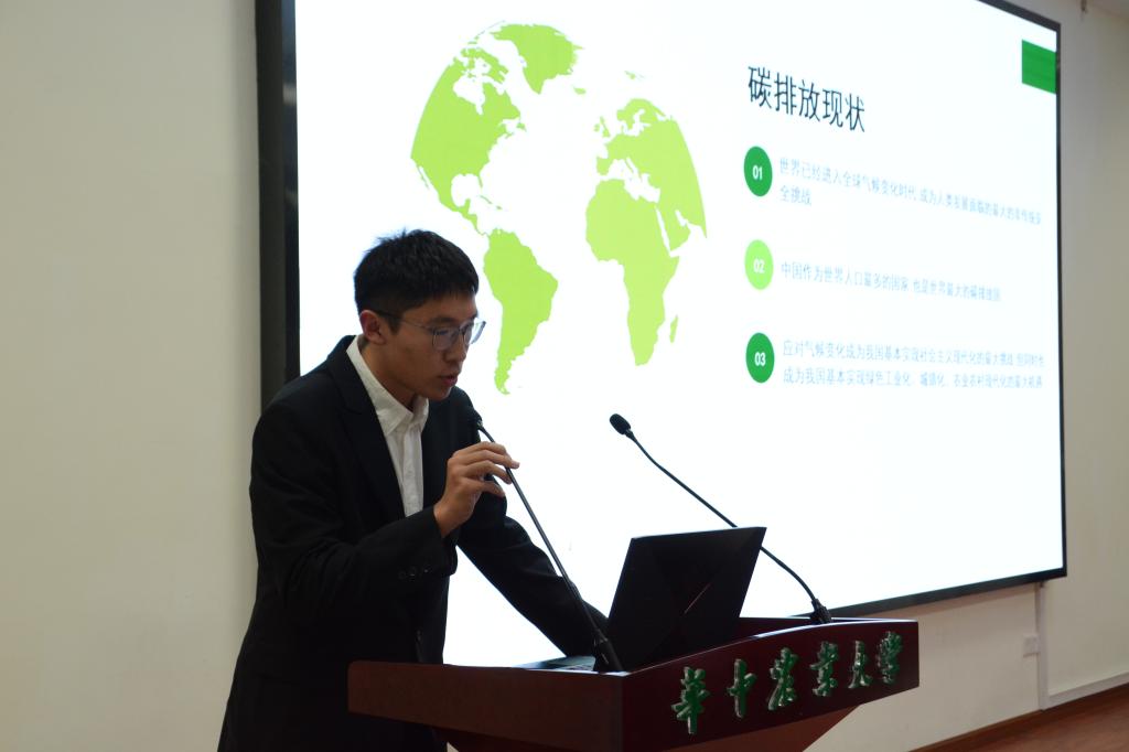 “碳达峰的道路上困难诸多,未来任重而道远,身为新时代新青年的我们义不容辞。”机械2002班高源说道,他利用图表、大数据等形式,生动直观地向在场同学们阐述了他对碳达峰的理解。农工2005班黄奕爽围绕“立足国情,了解局势”“扬长避短,不畏困难”“抓住机遇,迎接挑战”“翻山越岭,柳暗花明”等四个方面向同学们展示了控制碳排放的重要意义以及中国在节能减排方面为世界做出的突出贡献。农工2001班张承从“学好专业知识,提升自我技能”“树立环保意识,积极减少碳排”“确立发展方向,实现自我价值”等三个方面阐述了工学人对于减少“碳排放”的思考,呼吁大家为实现“双碳”目标做出自己的努力。