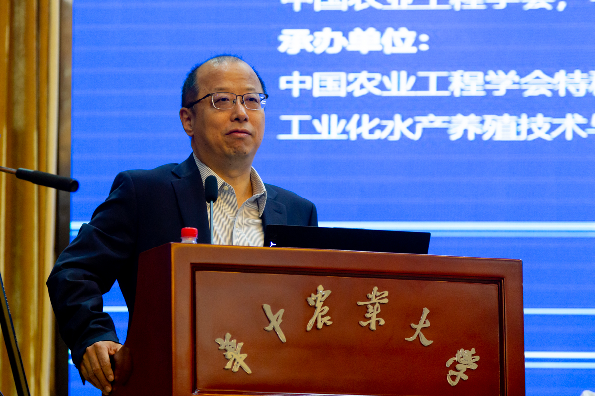 农业农村部养殖机械处副处长周小燕致辞。她表示,水产养殖业的绿色发展是国家食物安全、农村经济繁荣、促进渔民增收的必然要求,是巩固脱贫攻坚、实施乡村振兴的重要措施,是加快推进水产养殖机械化、促进水产养殖业转型升级的重要途径,对促进农业农村发展具有深远影响和重要意义。周小燕建议,要加强与科研院校、学术团体、行业协会合作,搭建“产、学、研、推、用”平台,推进技术融合、成果转化、生产应用,为水产养殖业绿色发展做出贡献。