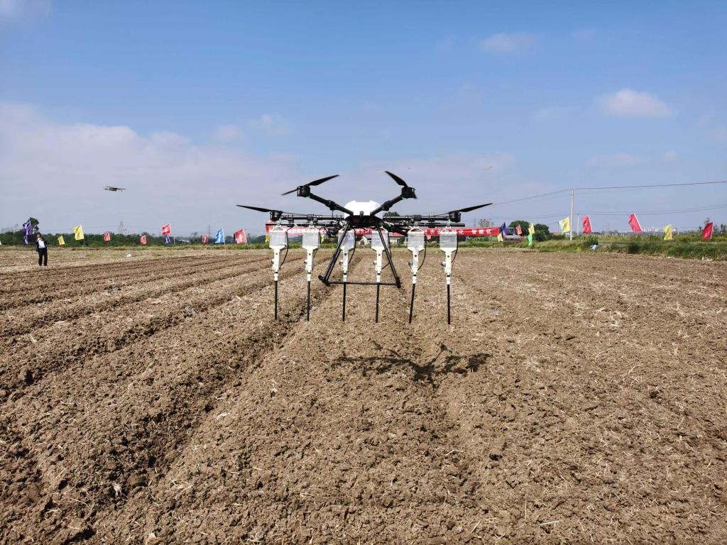 油菜无人直播机亮相油菜无人种植技术与设备现场观摩会