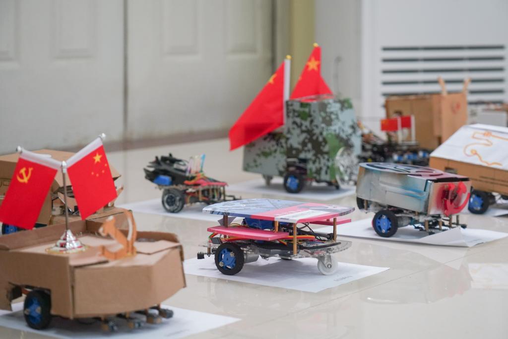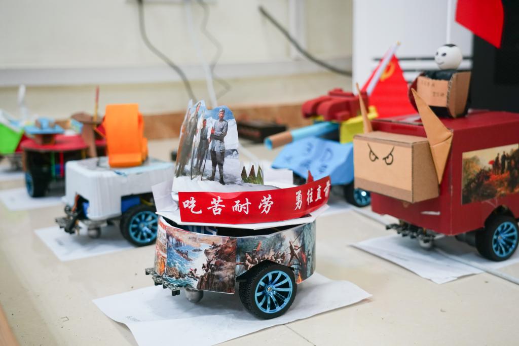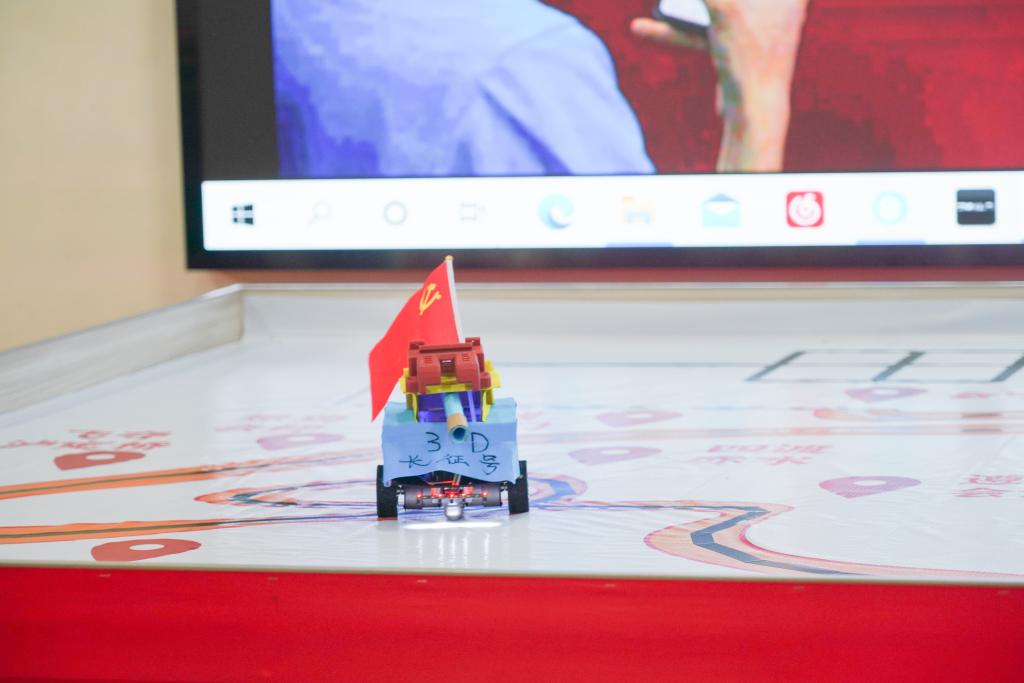 由机电1903班王宝琦担任队长的“红旗队”在设计小车时运用纠错系统的知识,若小车在行进过程中识别错误,将会自动倒退并重新修正路线,他谈到:“走过这段长征路,我明白了“曲折中前进”的道理,今天我们不只是简单地重温历史,回顾历史,而是更加深刻地体会到中国共产党的苦难与辉煌。我们要在历史中汲取前进的力量,未来将伟大的长征精神继承好、弘扬好。”