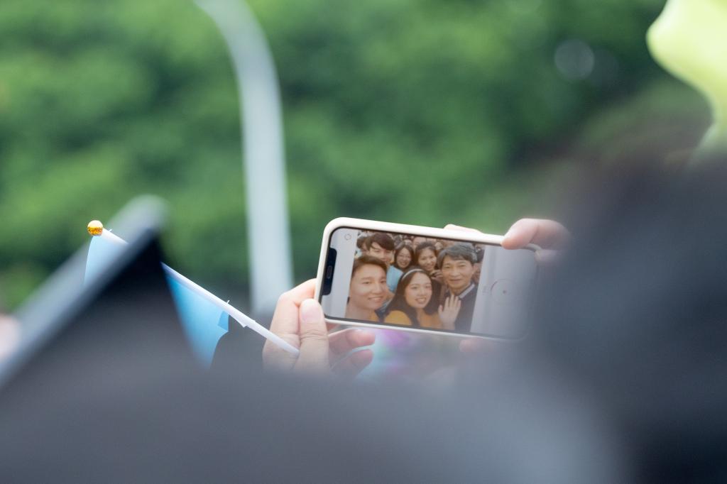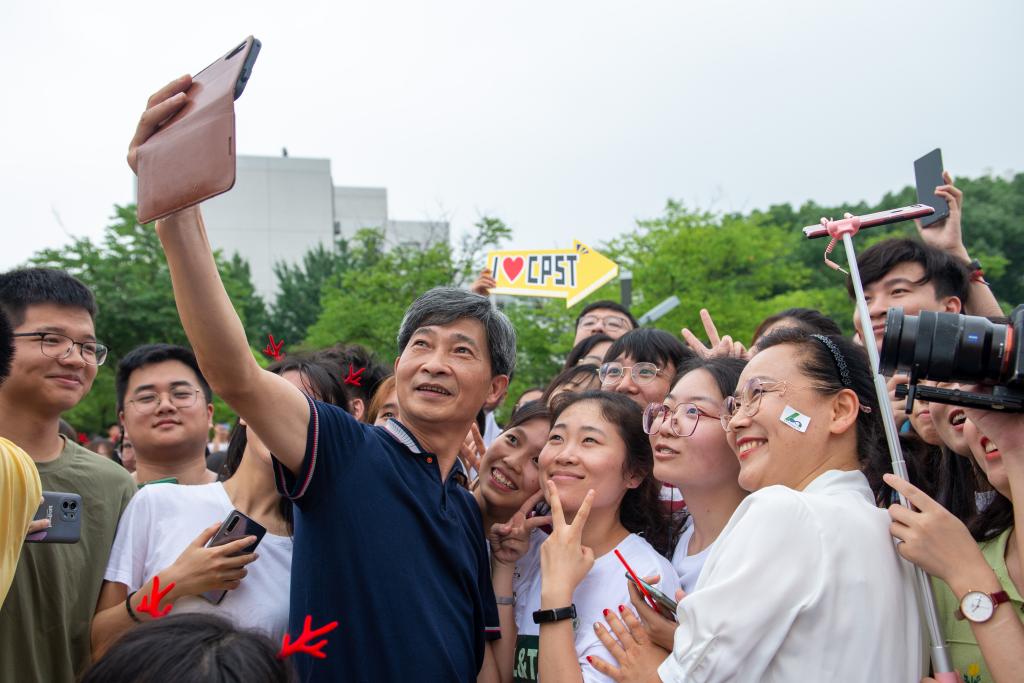 作为一名基础课教师,理学院陈华锋老师被一波又一波同学邀请至机车前合影,他感慨说:“和同学们一起巡游,自己仿佛重新回到了大学时代。作为一名老师,以这种特别的方式为大家送别,既是对学子们学有所获的祝贺,也是对美好的青春岁月的致敬。”