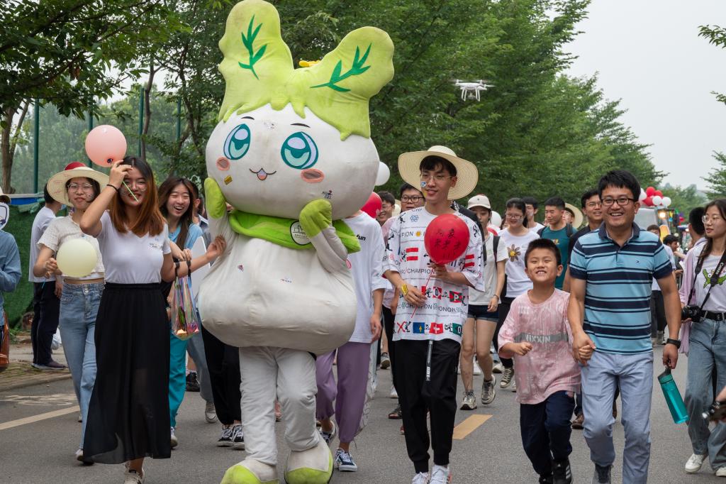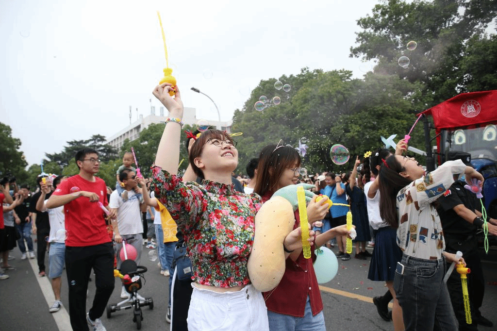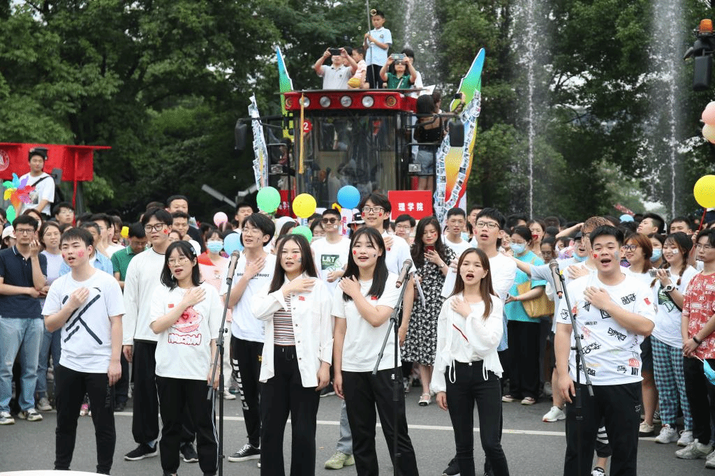 “太壮观了,太震撼了!”注视着滚滚向前的“钢铁长龙”,沿路的同学们也纷纷加入欢乐的海洋,融入巡游队伍之中。