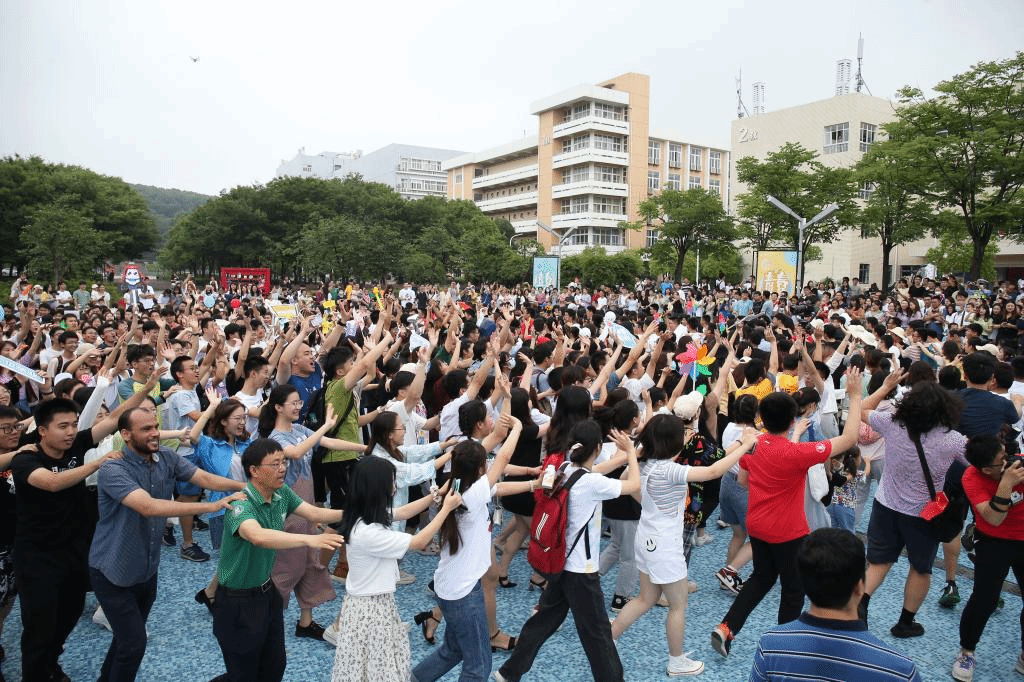 深情歌唱后,欢快的音乐响起。舞池中央,同学们纷纷携手跳起了交谊舞,现场气氛也在大家的舞动中被点燃,不少留学生也加入了舞动的队伍之中。随后,师生手拉着手共同跳起了“兔子舞”,高翅教授也一同加入舞池中,并与同学们一起高声欢呼“毕业快乐”“我爱华农”,灿烂的笑容在每张脸庞上绽放,欢呼声、掌声响彻狮山。同学们热情地和老师们合影留念,现场的师生也纷纷用手机、相机记录下和师长、同学们的珍贵瞬间。