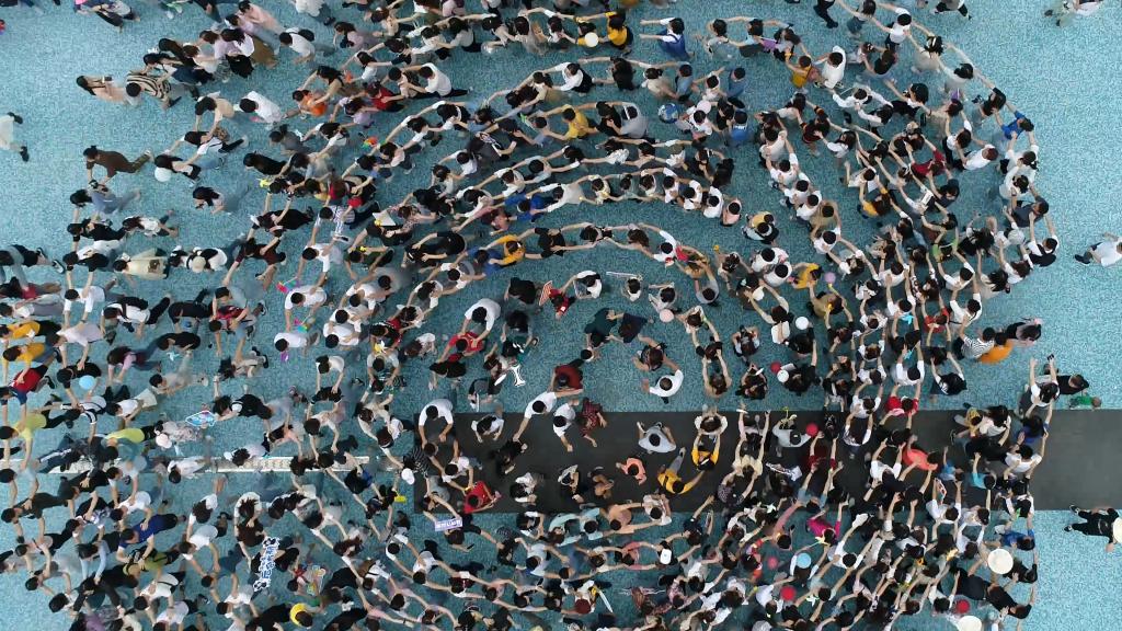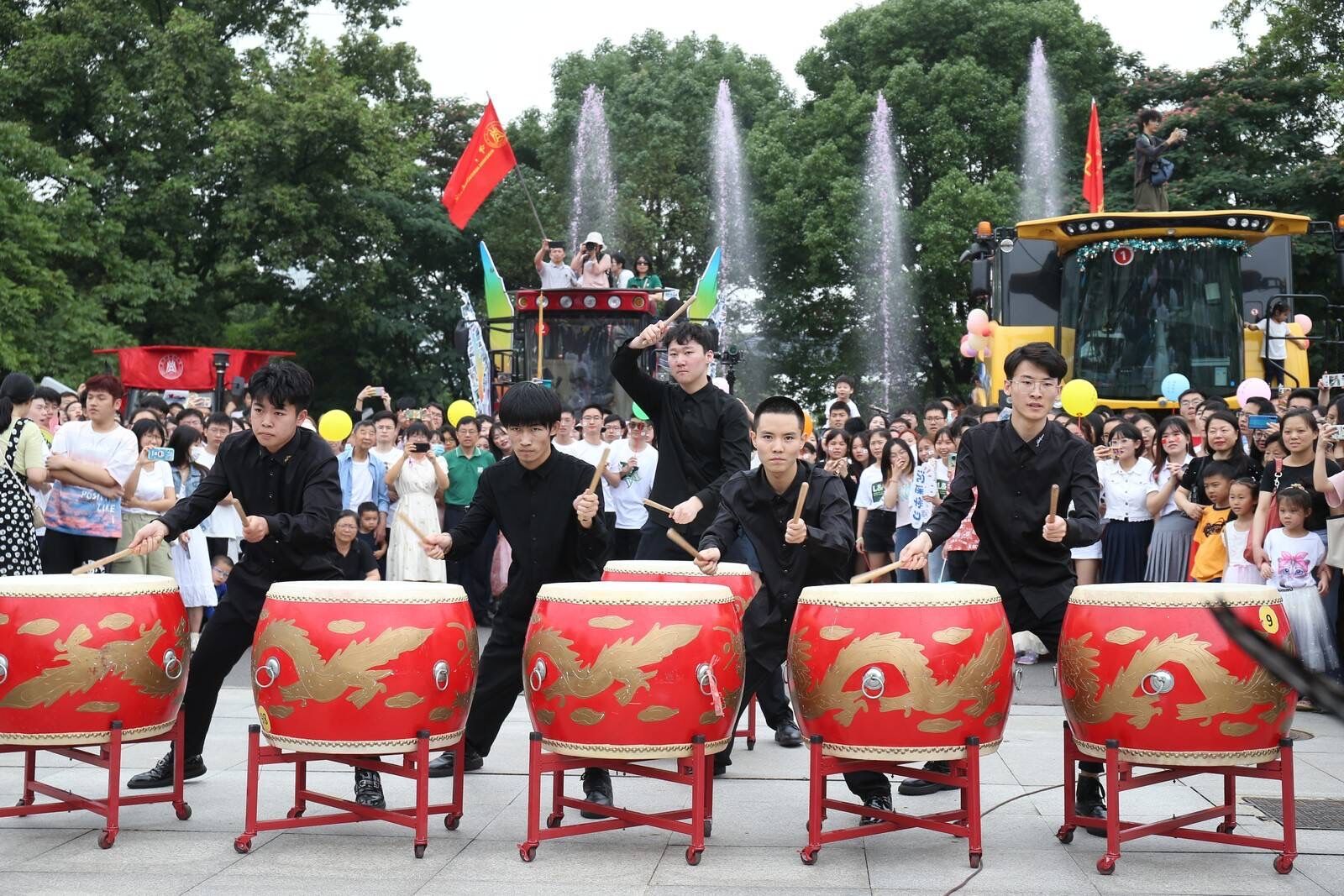 激昂的鼓声骤然响起,鼓手们不时变换着击鼓的手势,鼓声时而急如万马奔腾,时而缓如母亲呢喃细语,与现场师生们的欢呼声汇成了一曲交响。
