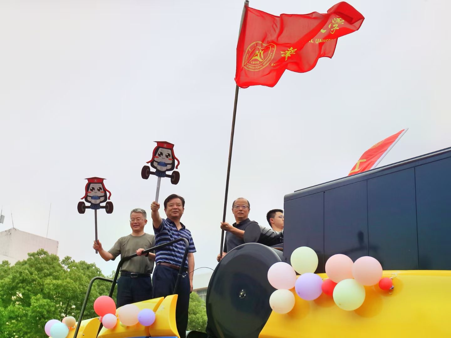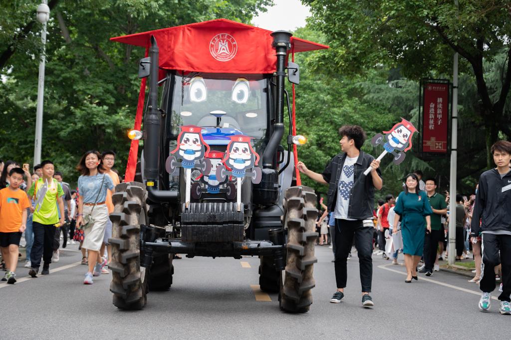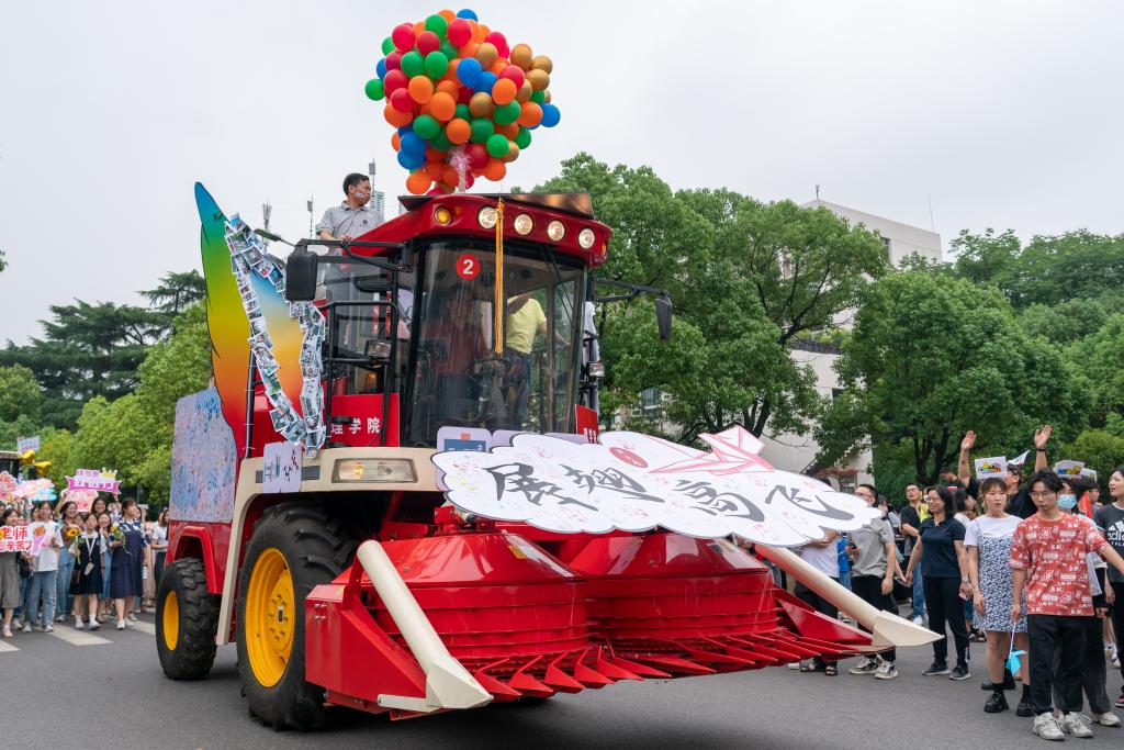 (转自南湖新闻网)6月20日上午,一场由现代农机装备组成的“钢铁长龙”毕业巡游在校园里欢乐举行。校党委书记高翅、校长李召虎,校党委副书记姚江林、校党委副书记、纪委书记廖济忠、副校长郭刚奇、青平、杨少波及全校15个学院的师生们一起,共同欢庆2021届毕业生毕业。近23万网友线上观看了此次活动的网络直播和回放。