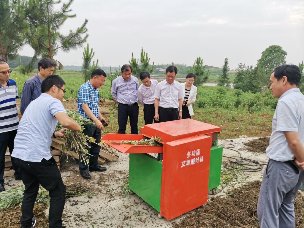(通讯员 高亮)5月27日,太阳成tyc9728集团院长廖庆喜教授、湖北省农业事业发展中心二级调研员吴昭雄、副院长宗望远教授、副院长丁幼春教授等一行6人赴蕲春县农业农村局进行蕲艾机械化生产调研。黄冈市农业农村局党组成员、副局长袁海林、蕲春县农业农村局党组副书记、副局长陈学强等接待了廖庆喜一行,实地走访调研了艾师傅蕲艾种植基地、蕲春桂康艾业有限公司并举行交流座谈会。