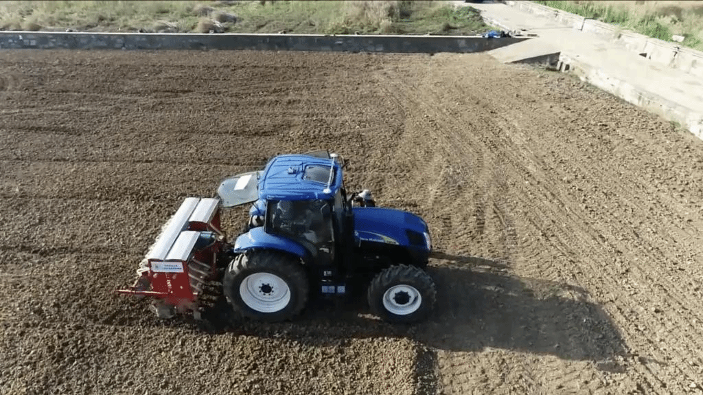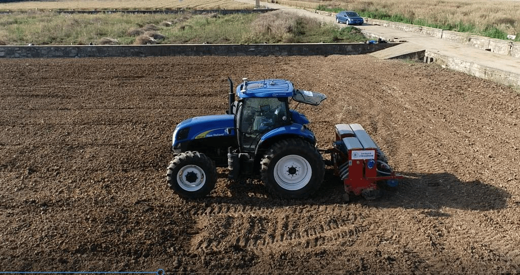全无人油菜播种机以凯斯拖拉机为动力机,挂接自主研发的2BQFX-8(6)型正负气压组合式精量播种机,在峰会期间展示了全自主无人操作自动对行播种作业、实时测障停车等功能。全无人油菜播种机高度集成开沟、旋耕、灭茬、施肥、播种(油菜或小麦)、镇压、地轮仿行驱动、覆土平田等技术,可一次性完成开沟、旋耕、精量播种、覆土、施肥等多道工序,实现高效作业,同时有效降低生产人力成本,是构建无人农场无人作业的重要技术支撑。