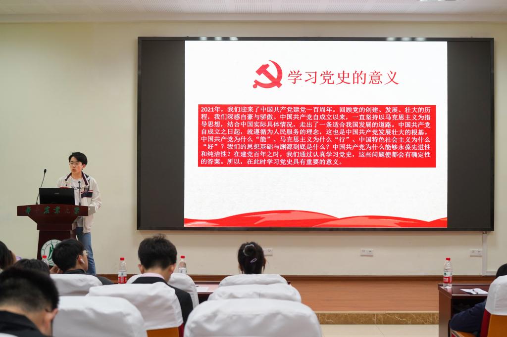 活动中,主讲人围绕对党史的理解、党史学习的意义、青年应如何从党史中汲取奋进力量等方面展开演讲。机械2002班的高源同学从党的诞生之日谈起,结合当时的社会环境,表达了对党的信仰、初心、使命等方面的感悟,最后他从了解党的初心、传承党的意志、继承党的传统三个方面表达了争做新时代好青年的决心。来自机械2010的王桐新同学以“学党史,谱新篇”为中心,分享了自己对党史学习的心得体会,提出要“听党话、跟党走,争做新时代好青年。”机电1904班林澄同学向在场观众介绍了党的奋斗历程,通过对比中国在不同时期的发展图,说明了党史学习的重要意义:一百年来,中国共产党团结带领全国各族人民破壁图强、砥砺奋进,浴血奋战,建立了新中国,中国共产党不忘初心,砥砺前行,引领中国人民走向改革开放的富裕道路,使中国人民走向富强的大国担当之路。活动结束后,机电1901班柳谈歌同学表示:“开展青年开讲活动,更加加深了我对党史的认识和理解,在以后的日子里,我一定扎实学习,勇于实践,敢于迎接挑战,在攀登知识高峰中追求卓越,在肩负时代重任时行胜于言。”