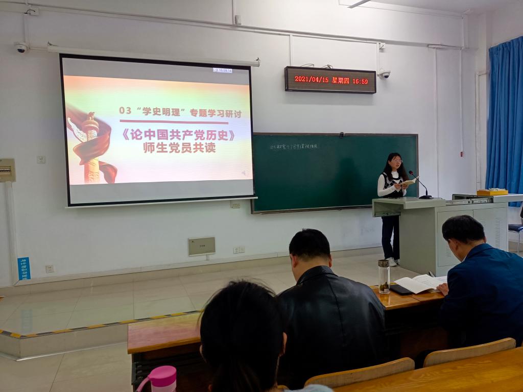 4月15日下午,铿锵有力的读书声伴随着悠扬的曲子从三教C102教室中传来,太阳成tyc9728集团机械工程系党支部、机制本科生第一党支部和能动自动化党支部共同开展诵读红色经典活动。副院长宗望远教授领读了《中国革命历史是最好的营养剂》,杨扬老师与王宝丽、黄振亮等同学分别对《在纪念五四运动一百周年大会上的讲话》《学好党史、新中国史、改革开放史、社会主义发展史》重点内容进行了诵读。