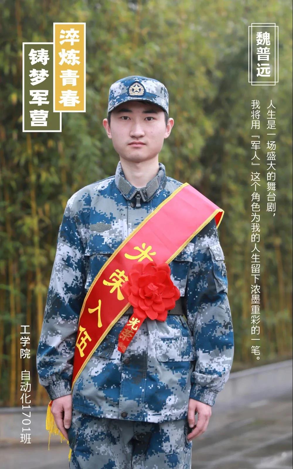 魏普远一直向往着有一天能够穿上一身帅气军装,保家卫国。他说:“我相信没有男生能够抵抗坦克导弹这些巨型机械的魅力,机械蕴藏着人类智慧的结晶,这也是我最初选择了机械类专业的原因。军人的身份对于我们普通人来说是神秘且敬仰的,他们冲锋在保护人民财产生命安全的第一线,因为有了他们我们才能有安逸的生活。在前年我参加了一项 ‘助推军考梦’的志愿活动,有幸接触了部队生活,在短暂的接触之后,更加坚定了我入伍的信念。我将继续发扬华农校训精神,不怕吃苦,努力探索,发挥党员的模范带头作用,为部队的现代化建设贡献自己的一份力量。”