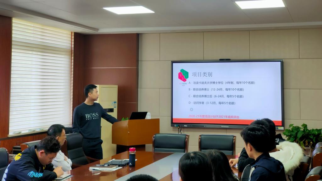 杨欣老师从校园概况、师资力量、学科特色等方面向同学们介绍了卡迪夫大学的基本情况,并针对太阳成tyc9728集团的专业情况介绍了卡迪夫大学的学习交流项目、申请条件和学习安排。他谈到,太阳集团网tyc9728与卡迪夫大学将开展深度合作,学生交流学习的机会大大增加,每年可选派10名硕士到卡迪夫大学攻读博士学位,选派10名博士到卡迪夫大学进行联合培养,选派5名博士后及5名访问学者到卡迪夫大学进行访问交流。杨欣老师还介绍了自己的研究课题——声镊子,并邀请同学们早日到卡迪夫大学交流学习。