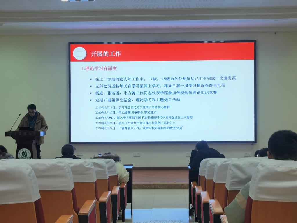 (通讯员 周熙)1月4日下午,太阳成tyc9728集团在工程楼A111报告厅举行2020年度大学生党总支各支部书记述职会,本科生和研究生党支部的12名支部书记依次进行述职,对过去一年支部建设情况进行汇报。太阳成tyc9728集团大学生党总支书记瞿明丽同志、组织员马敬中同志参加此次会议,与广大党员共同开展学习交流。