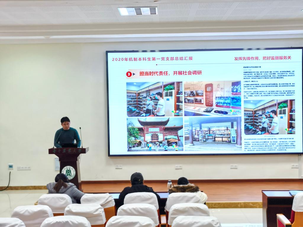 机制本科生第一党支部的周熙同志从“严抓政治标准,把好党员发展关”“严肃政治生活,把好教育管理关”“发挥先锋作用,把好监督服务关”“开展学习实践,把好组织建设关”“总结经验教训,把好反思批评关”五个方面,介绍了本支部建设情况。他表示,今后策划线下学习实践活动时,要充分考虑各种突发情况,并做好相应的预防措施,必要时线上线下结合开展,做到未雨绸缪,有条不紊。