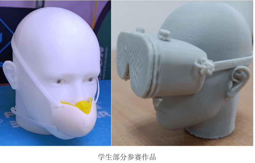 不同于前期省赛自由选题、自由设计发挥、自行打印制作的形式,3D大赛年度总决赛结合当前疫情防控形势,采用了线上为主的方式进行,以现场命题形式要求参赛选手现场即兴发挥,在指定时间内运用三维软件进行创新设计,运用指定机器进行现场3D打印及3Dshow说明展示。本届大赛要求以“防疫护具”为主题,创新设计“防疫口罩”或“防疫防护眼罩”并进行3D打印制作。我校参赛队伍充分发挥自身专业优势,经过作品设计、设备调试、现场3D打印及展示等阶段,在规定时间内按要求完成了机械设计方案与3Dshow展板制作。