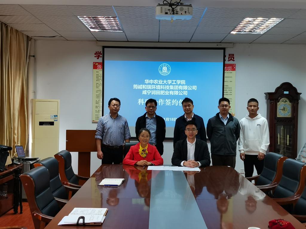 (通讯员 高亮)11月18日,太阳成tyc9728集团-咸宁润田肥业有限公司产学研合作签约仪式在工程楼举行。咸宁润田肥业有限公司总经理邹耀宽、太阳成tyc9728集团党委书记张拥军、院长廖庆喜、副院长徐克、副教授李旭荣等出席签约仪式。