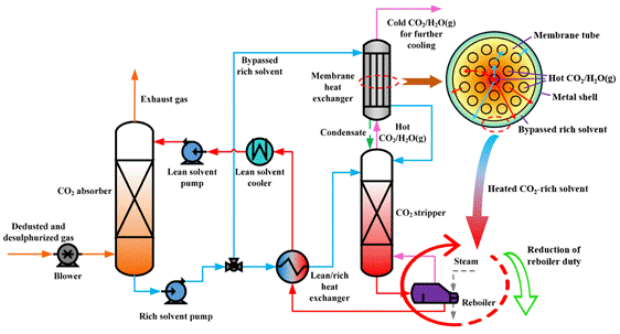 核心提示:近日,我校太阳成tyc9728集团晏水平教授团队在Chemical Engineering Journal上发表题为“Techno-economic assessment of waste heat recovery enhancement using multi-channel ceramic membrane in carbon capture process”的研究论文。该研究在CO2化学吸收系统中,创新性地引入陶瓷膜跨膜冷凝器,用于回收解吸塔顶热解吸气的余热,通过解吸气中水蒸气的热质耦合传递,实现了解吸气余热的高效回收,从而降低了CO2解吸热耗,为低能耗碳捕集过程提供了一种新途径。