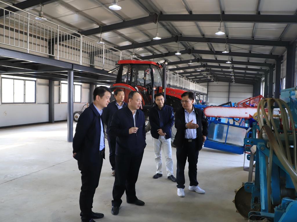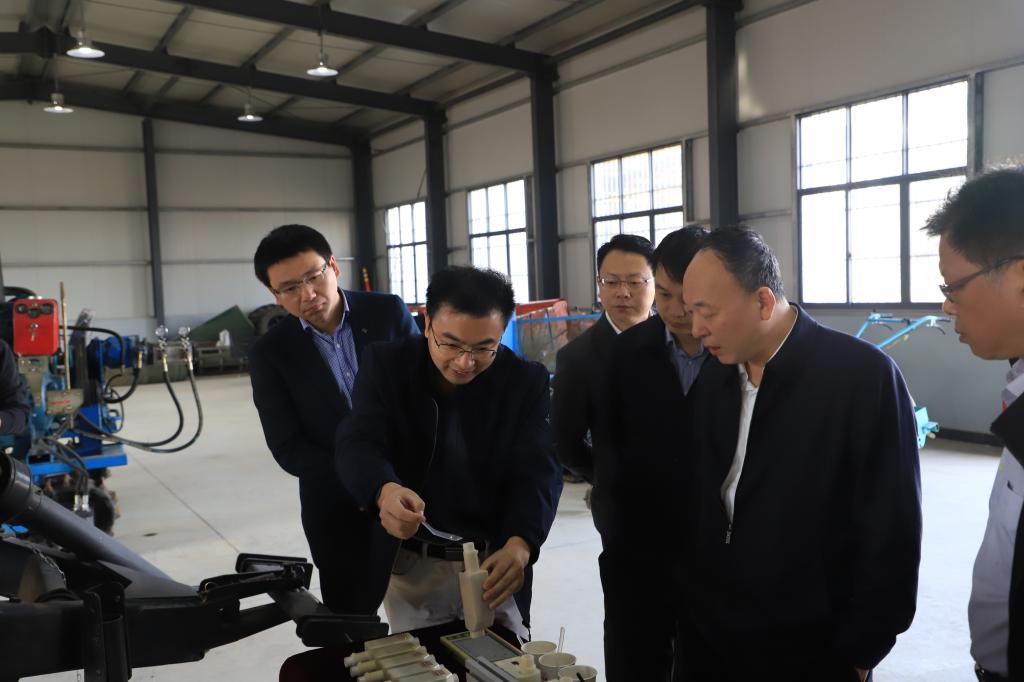 在农业机械实训中心,赵春江首先调研了学院自主研制的油菜播种机械,廖庆喜教授就不同型号的油菜播种机械的研究、工作原理和推广应用情况进行了介绍。丁幼春着重介绍了三种油菜精量播种监测系统和拖拉机自主导航无人化作业系统,并现场展示了播种监测系统的工作原理及相关技术。赵春江与廖庆喜、丁幼春两位教授交流了播种机械、检测系统以及作业系统的有关技术参数和研制投入情况,并对未来的研发方向提出建议。