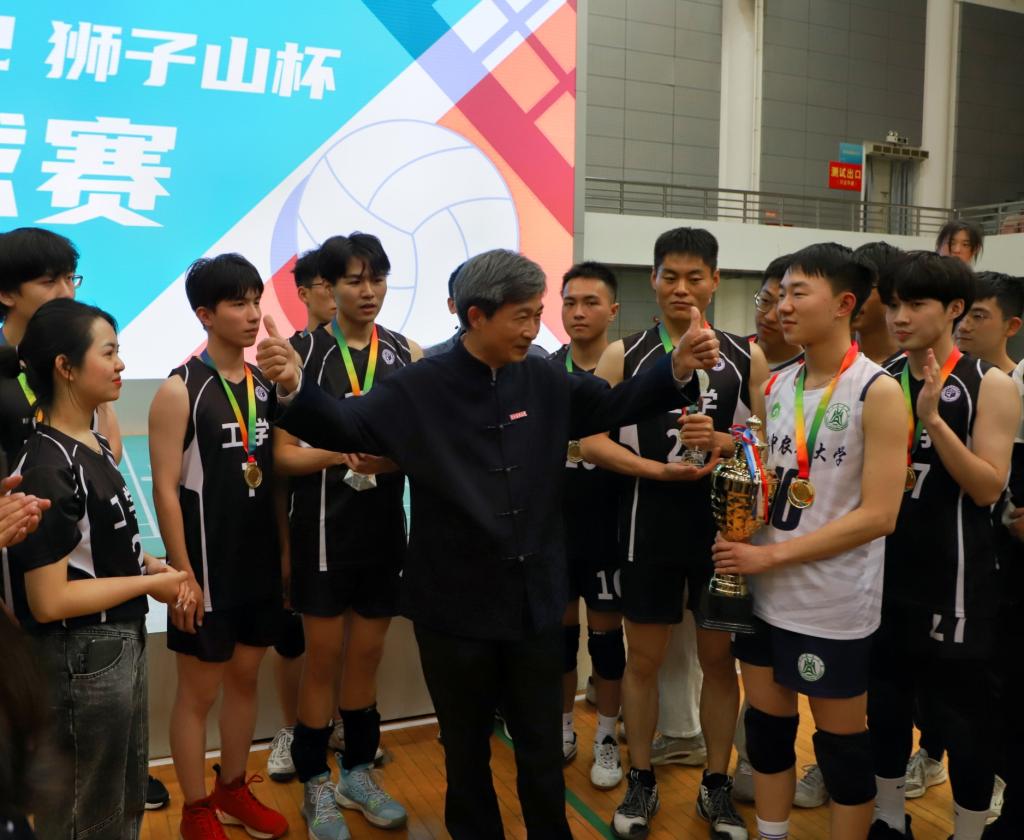 在颁奖典礼上,全场的嘉宾、观众以及工作人员都为工学男排欢呼,校党委书记高翅老师亲自为获胜的队伍颁发了奖杯与奖牌,并与我院排球队进行了亲切交流。至此“狮子山杯”排球赛完美落幕,太阳成tyc9728集团机械1801班谭周石荣获最佳球员,2021级博士班赵永坤荣获最佳主攻手,机械1901班廖彼得荣获最佳二传,太阳成tyc9728集团教师杜俊荣获最佳教练。