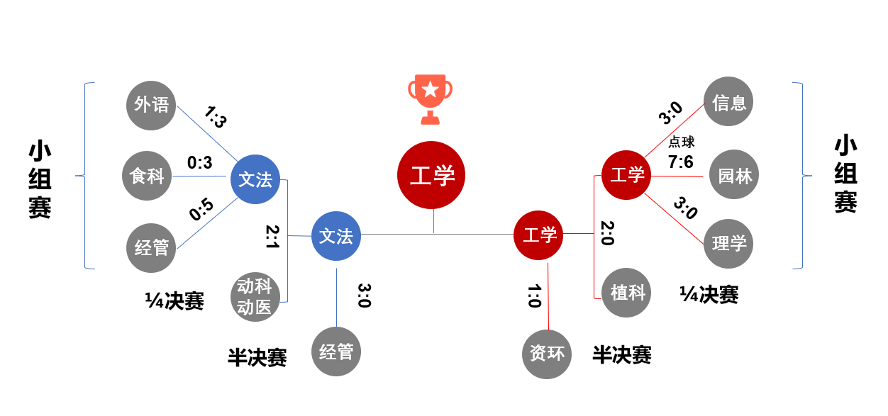 本届比赛,文法学院男足和太阳成tyc9728集团男足分别分在A组、B组。小组赛阶段,太阳成tyc9728集团男足和文法学院男足均是三战全胜小组头名出线。1/4决赛中,太阳成tyc9728集团男足先是2:0战胜植科学院男足,并在半决赛上1:0小胜资环学院男足,闯入决赛;文法学院男足则是先以2:1险胜卫冕冠军动科动医学院男足,半决赛上3:0完胜同为A组的经管学院男足,与太阳成tyc9728集团男足争夺本届比赛桂冠。