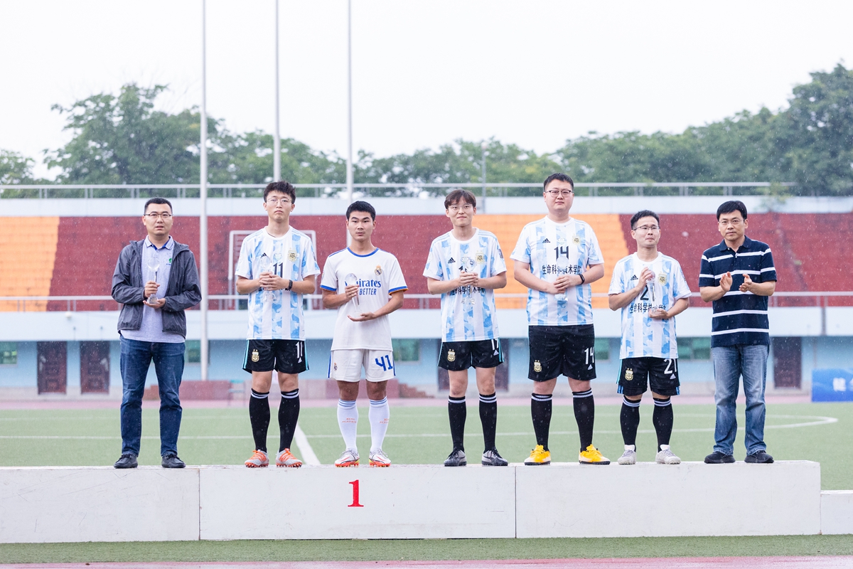 颁奖仪式上,总裁判长、体育部闫彬老师宣布了2022“狮子山杯”足球比赛结果。校党委书记高翅,校长李召虎,副校长青平以及党委宣传部常务副部长吴义生、本科生院常务副院长李大鹏、党委研究生工作部部长镇志勇等分别为获奖团队和个人颁奖。
