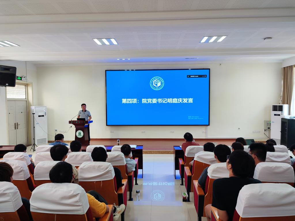院党委书记明庭庆代表学院向研究生新同学表示诚挚的祝贺和热烈的欢迎。“遇见是一种神奇的东西,它是一切的开始。我们在这里遇见,就开启了大家人生新的旅程和值得期待的可能。”明庭庆谈到,新时代是一个人才辈出的时代,也是一个创新变革的时代,更是一个积极向上、奋发有为的时代,新同学们正逢其时。他嘱托新同学们立足中华民族伟大复兴的战略全局和世界百年未有之大变局,“立大志、明大德、成大才、担大任”,肩负起历史赋予的责任与使命,胸怀科技报国的远大理想,不负青春,不负韶华,扎根时代,服务人民。