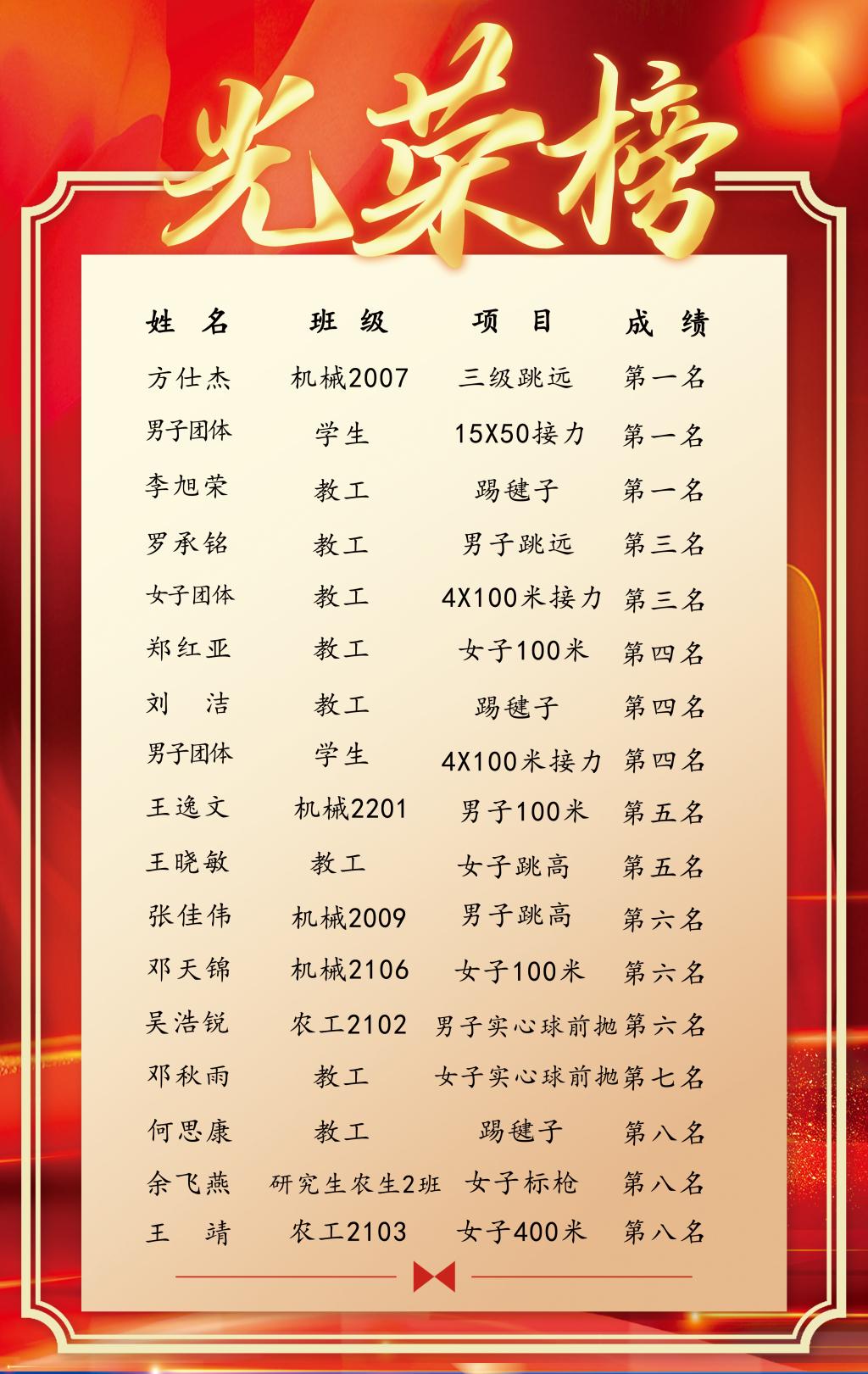 【运动会】光荣榜 | 第六十一届体育运动会闭幕,我院师生取得优异成绩!