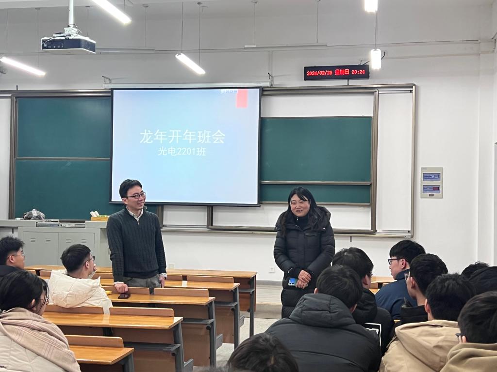 机械2104班班主任杨方老师对此将上学期《自动控制原理》授课时发现的问题与学生分享,提醒同学们功在平时,在课堂上要提高自己的学习效率。“有什么样的投入就有什么样的收获;知识改变命运,依靠学习走向未来”在光电2201班班会上院党委副书记瞿明丽老师鼓励同学们要迅速调整状态,始终以谦虚的心态、学习的状态、奋进的姿态做好学习和职业发展规划,将主要精力投入到学习中来,提升自身核心竞争力。