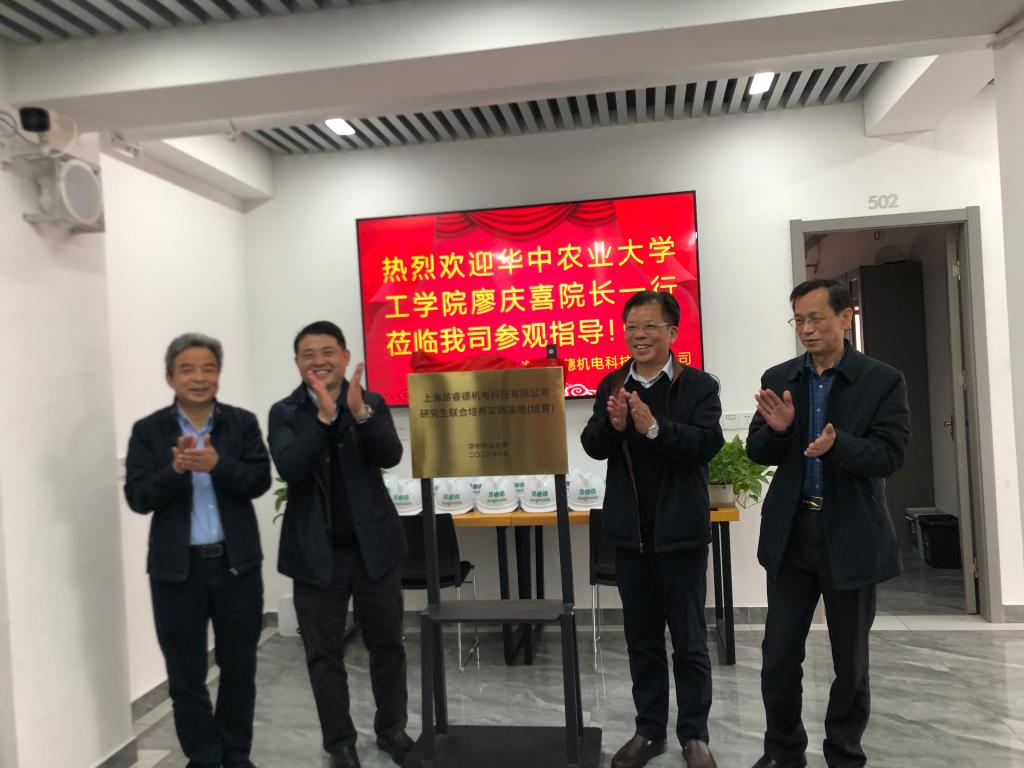 期间,廖庆喜和周海山共同为“上海昂睿德机电科技有限公司研究生联合培养实践基地”揭牌,并对如何开展校企深度合作、推进研究生联合培养实践基地建设开展了专门研讨。双方一致同意,要为培养更具实践能力和创新能力的现代卓越工程师、助力太阳成tyc9728集团研究生的学业和就业发展,协力打造坚实的实践平台。