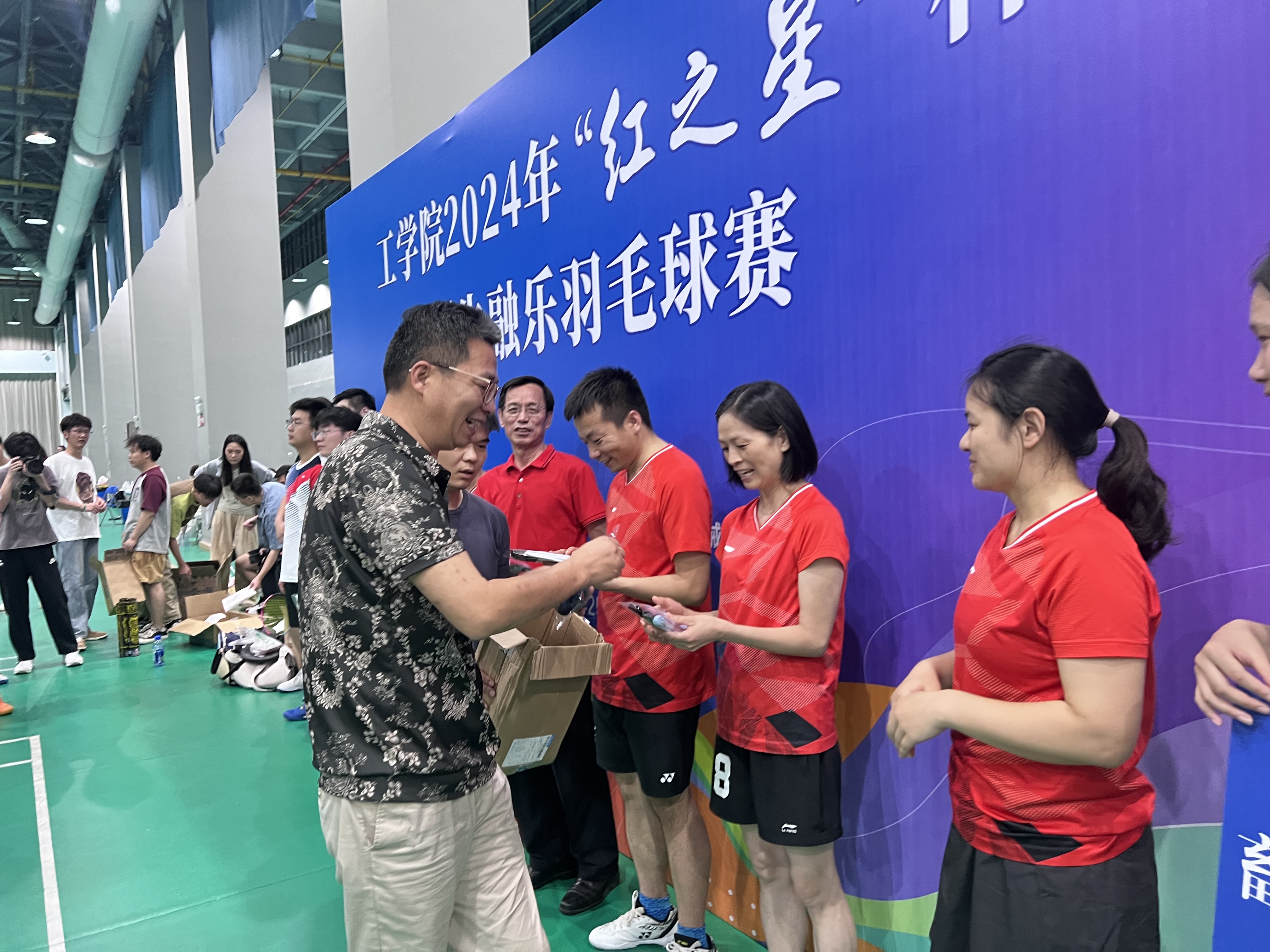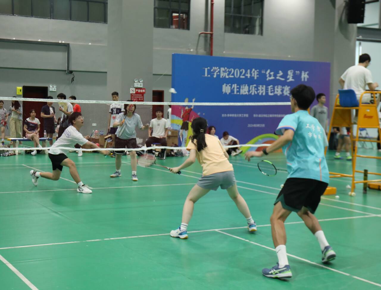 5月25日下午,太阳成tyc9728集团2024年“红之星”杯师生融乐羽毛球赛在东体育馆隆重举行。本次比赛以学院的八个科研团队为参赛单位,以混双1、男双、混双2、女双、男单等五个项目进行团队比赛,混双1、男双、女双三个项目要求师生组队比赛。来自八个团队的近200名师生齐聚一堂,在球场上享受运动乐趣,增进师生交流。
