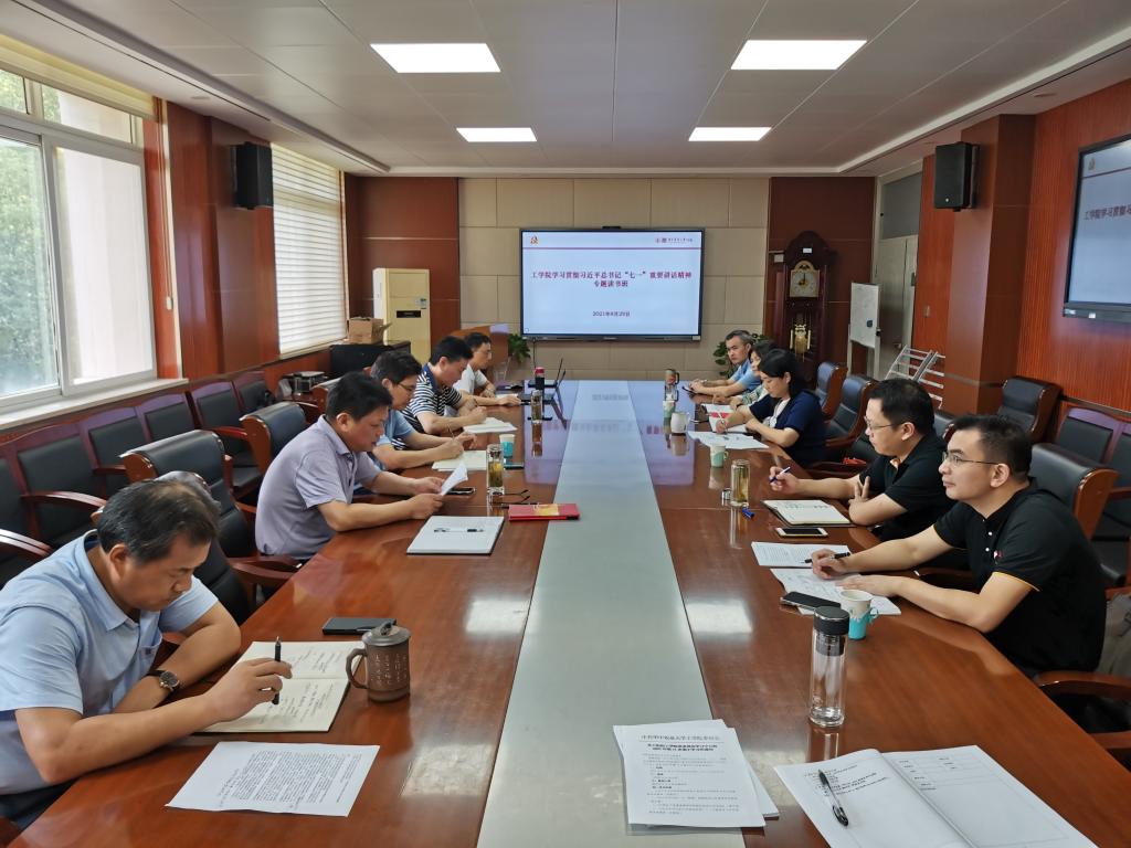 廖庆喜分享了学习总书记在“七一勋章”颁授仪式上重要讲话精神的体会。他谈到,“七一勋章”是党内的至高荣誉,获得者是各条战线普通党员中的杰出代表,是学习的楷模。身为党员干部和人民教师,要坚定信念,以初心使命为镜子,着力培育一流“新工科”卓越人才;要践行宗旨,密切联系师生,凝聚师生集体智慧,形成学院事业发展的不竭动力;要拼搏奉献,保持“敢叫日月换新天”的斗志,努力创造新业绩新辉煌;要廉洁奉公,清清白白做人、干干净净做事,永葆共产党员的本色。