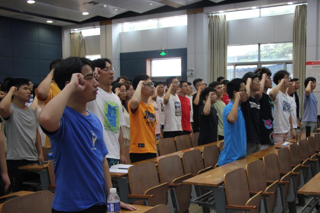 党课在重温入党誓词声中拉开帷幕,师生党员们在党旗下举起右拳、庄严宣誓,坚守党员初心使命,共同期许未来征程。王镜朝同志向广大毕业生党员发起号召:“今年是中国共产党成立100周年,习近平总书记号召在全党集中开展党史学习教育。欲知大道,必先为史,党的辉煌成就、艰辛历程、历史经验、优良传统,深刻启示着中国共产党为什么‘能’、马克思主义为什么‘行’、中国特色社会主义为什么‘好’。作为一名新时代的青年共产党员,要坚持全心全意为人民服务的宗旨,不断以实际行动去践行这一目标。”王镜朝动情地分享了自己在疫情期间参与防疫志愿服务的工作经历,以及自己在华农的成长历程。“不管走到哪,大家都是华农的一份子,我们要牢记‘勤读力耕,立己达人’的校训精神,将华农精神、工学精神发扬传承。我们怎样,华农就怎样,青年就怎样,中国就怎样。”在他看来,每个人都在华农这个大家庭里遇见了更好的自己。