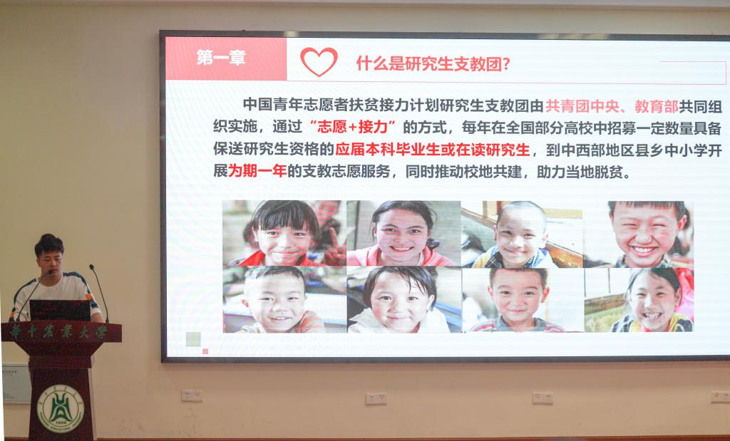 随后,支教团成员、太阳成tyc9728集团2017级机电专业的胡世灵同学介绍了太阳集团网tyc9728研究生支教团的起源和发展,向大家说明支教团的相关工作内容和招募政策,并介绍了安钥琦等优秀支教团志愿者代表,呼吁更多有志愿服务志向的本科生参加研究生支教保研项目。