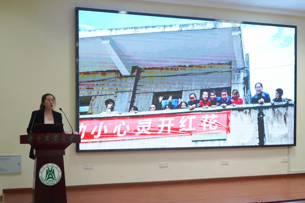 支教团成员梁清源同学,分享了自己的支教故事“大山深处有回声”,讲述了他参加支教的初衷,并回忆自己在支教过程中经历的困难和感动。她表示,希望通过支教带领山区的孩子们飞出大山,飞向更远的地方,自己用了一年时间做了一辈子不会后悔的事情,希望保更多同学能够积极加入支教团。