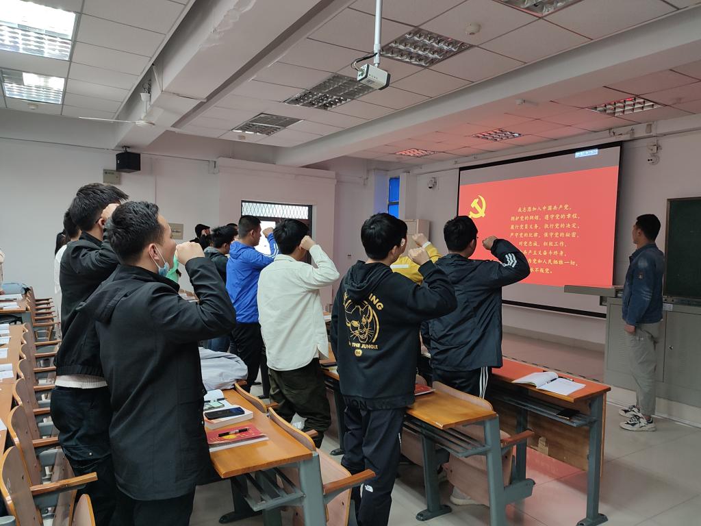 会议开始,农业机械化工程与装备研究生第一党支部组织委员刘风顺同志带领全体党员重温入党誓词。随后,开始进行理论学习。