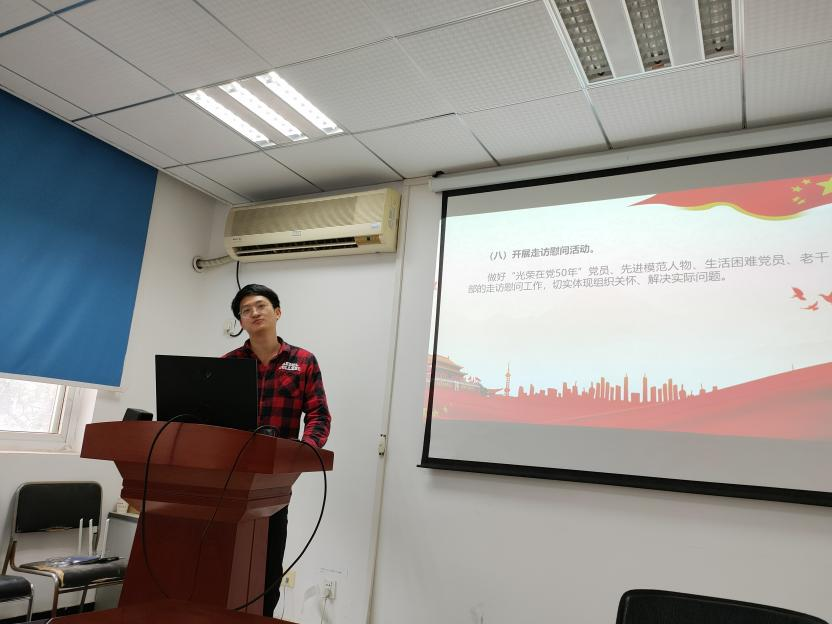 张帅同志介绍了贯穿2021年全年的党史学习教育的总体安排,主要分为三个阶段:一是从动员大会到“七一”庆祝中国共产党成立100周年大会。全面系统学习党的百年奋斗史,以时间为基本线索,专题学习新民主主义革命时期、社会主义革命和建设时期、改革开放新时期、党的十八大以来四个阶段历史,结合学习习近平总书记重要著作篇目,深化对马克思主义中国化成果特别是习近平新时代中国特色社会主义思想的理解。二是从“七一”庆祝大会到党的十九届六中全会。同中国共产党成立100周年庆祝活动贯通起来,重点学习习近平总书记在庆祝中国共产党成立100周年大会上的重要讲话精神。三是从党的十九届六中全会到总结大会。同学习贯彻党的十九届六中全会精神结合起来,认真学习习近平总书记在党史学习教育总结大会上的重要讲话精神。张帅同志提出,作为党的基层组织,我们要积极的投身党史学习教育,提高思想认识,把党史学习教育作为当前的最重要工作来做,将其作为支部的一项政治任务。党员同志不仅自身要积极投入学习,还要带动身边的群众、积极分子一起学,了解我党百年来的风雨历程。