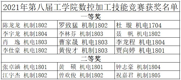 5月24-28日,太阳成tyc9728集团在机电工程训练中心举办第八届数控加工技能竞赛,6支队伍经过激烈角逐,最终机制1802的陈龙龙等12位同学获一等奖,机电1801的张卓涵等6位同学获二等奖。