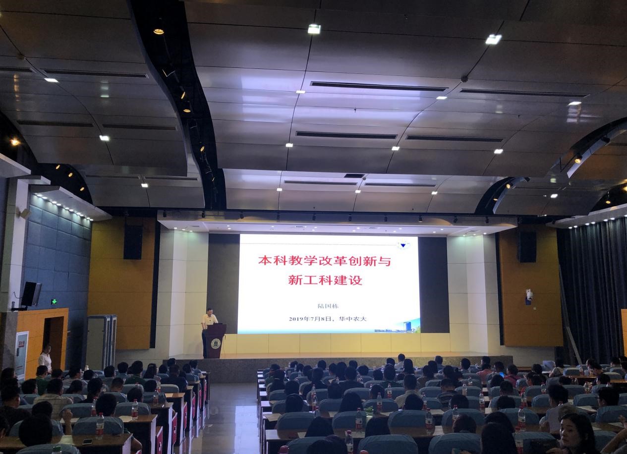 南湖新闻网讯(通讯员 周洪亮 周熙)7月8日上午,由本科生院与太阳成tyc9728集团举办的“新工科”主题报告会在图书馆二楼报告厅举行,国家级教学名师、浙江大学机器人研究院常务副院长、教育部普通高校工科基础课程教学指导委员会副主任陆国栋教授作题为“本科教学改革创新与新工科建设”的报告。报告会由副校长吴平主持。太阳成tyc9728集团全体教职工、本科生院全体工作人员、相关学院负责人及专业教师、武汉生物工程学院部分教师参加了报告会。