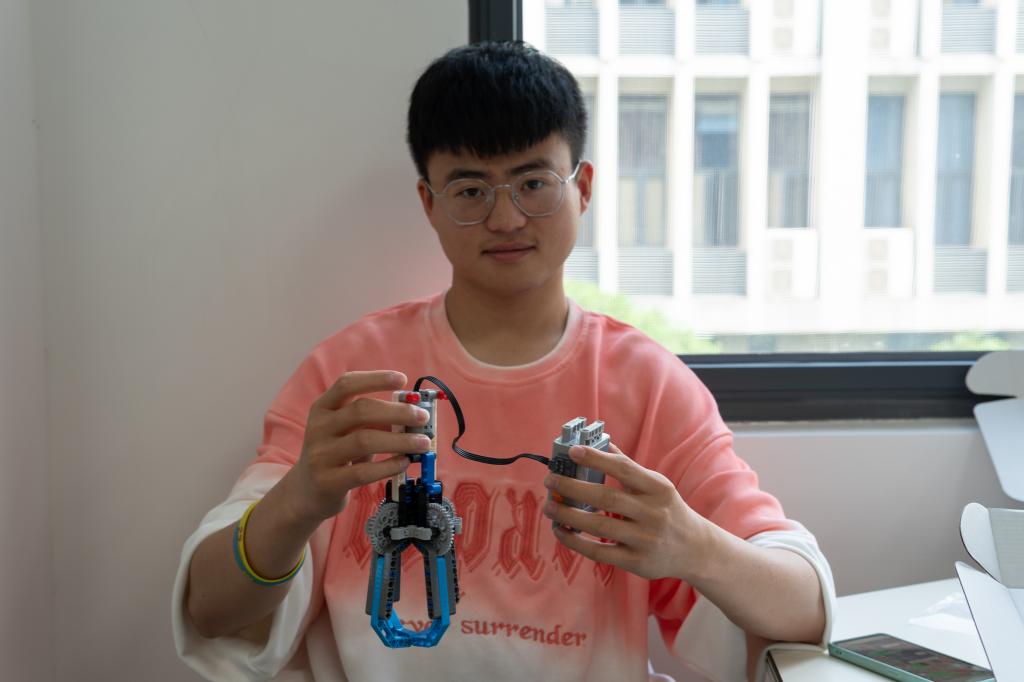 来自植科学院的周星艺选择拼装发动机差速器。“通过动手组装发动机差速器,让我直观的了解到发动机的内部构造和原理;通过小小的积木拼装,体会到了工学特色。”他兴奋地述说着参加这次活动的感受。