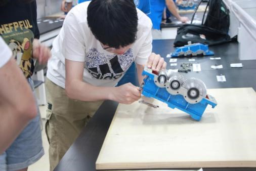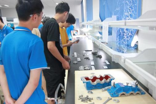 比赛中参赛选手们分工明确,积极配合,互相帮助,按照拆装工艺和工具正确使用标准对减速器进行拆卸和装配,比赛现场气氛热烈,每支参赛队伍都争分夺秒,动作迅敏,充分体现团队协作能力。