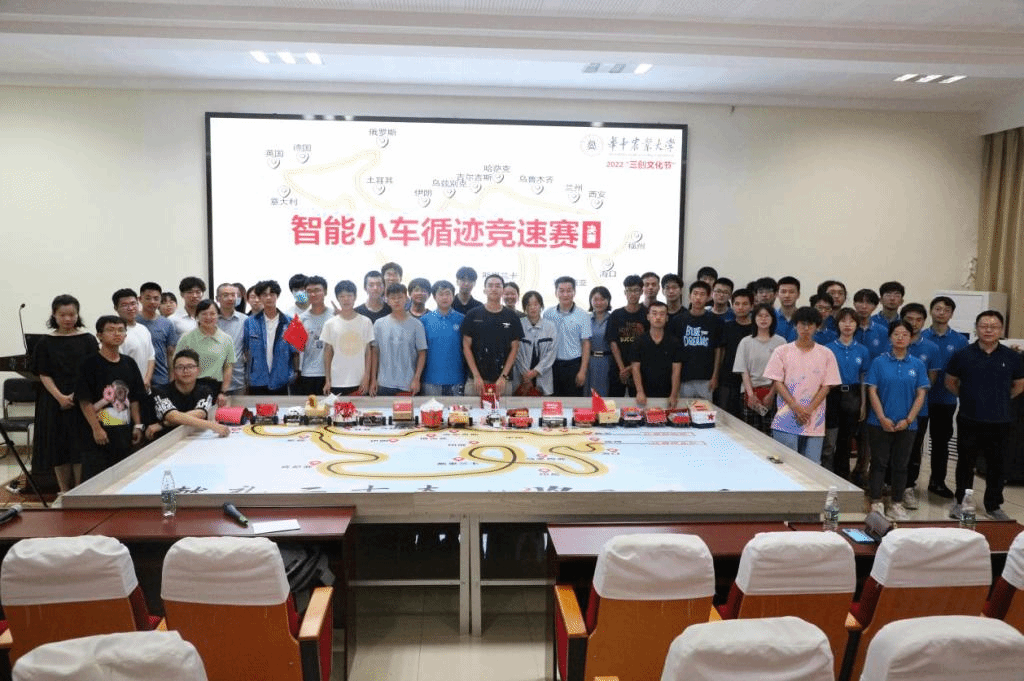 活动以“献礼二十大,丝路展风采”为主题,竞速赛道还原了“一带一路”路线,经过初赛复赛的激烈角逐,进入决赛的17支队伍带来基于单片机的智能小车,经过组装、调试和修正后,以迅捷的速度、准确的识别与灵活的反应沿赛道竞速比拼,依次经过北京、俄罗斯、德国、北欧等“一带一路”上的地区和国家,串联起共同繁荣发展之路,智能小车每运行完一段路程,同学们还会讲述“一带一路”的建设故事,感受开放包容的大国外交理念,献礼党的二十大。