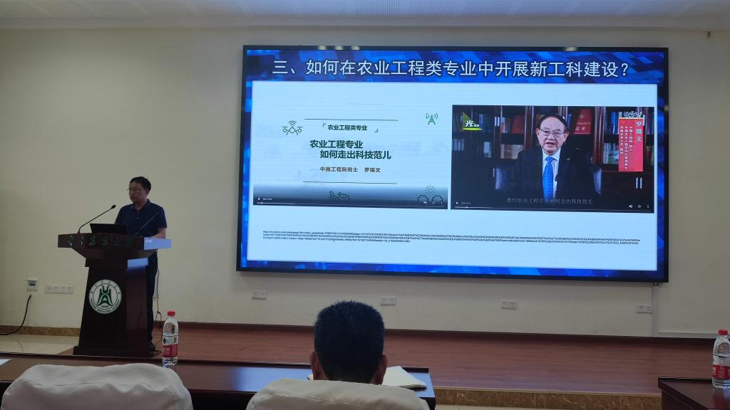 主题报告后,谭鹤群教授、陈红副教授、刘洁副教授等分别就“校企合作培养模式—实践基地建设”“专业课程体系与教材建设”“创新人才的国际视野培养”等2020年校级新工科、新农科教学改革研究项目进展情况进行了汇报。