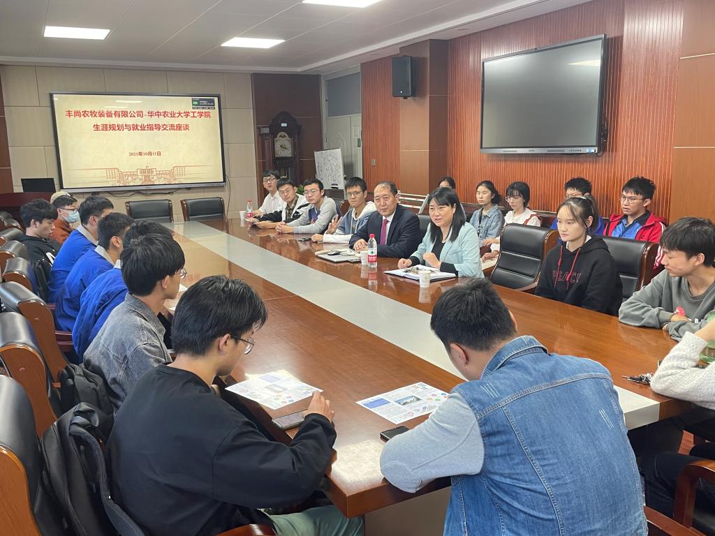 (通讯员 周熙)10月11日下午,丰尚农牧装备有限公司副总裁李向东一行来校进行交流。作为太阳成tyc9728集团企业导师,李向东和机械类2007班、农业工程类2002班学生开展生涯规划与就业指导专题交流座谈。太阳成tyc9728集团党委副书记瞿明丽、20级辅导员卜祥利共同参加此次座谈。