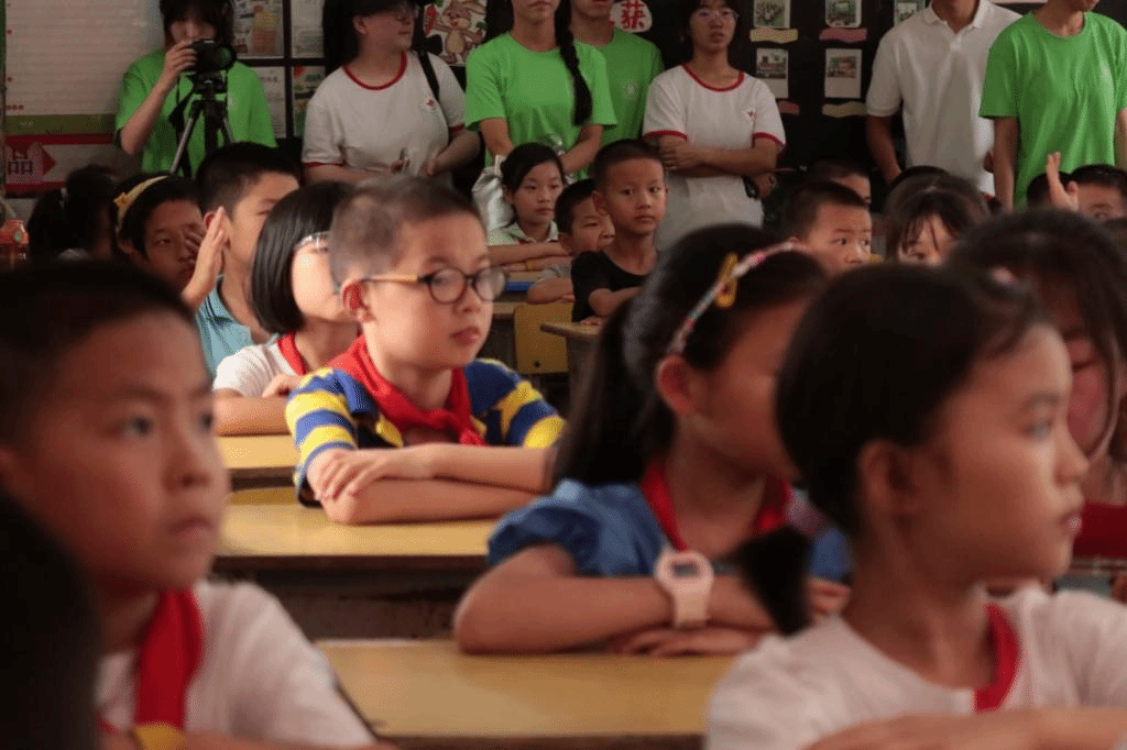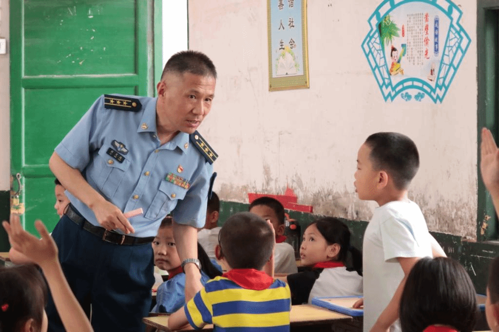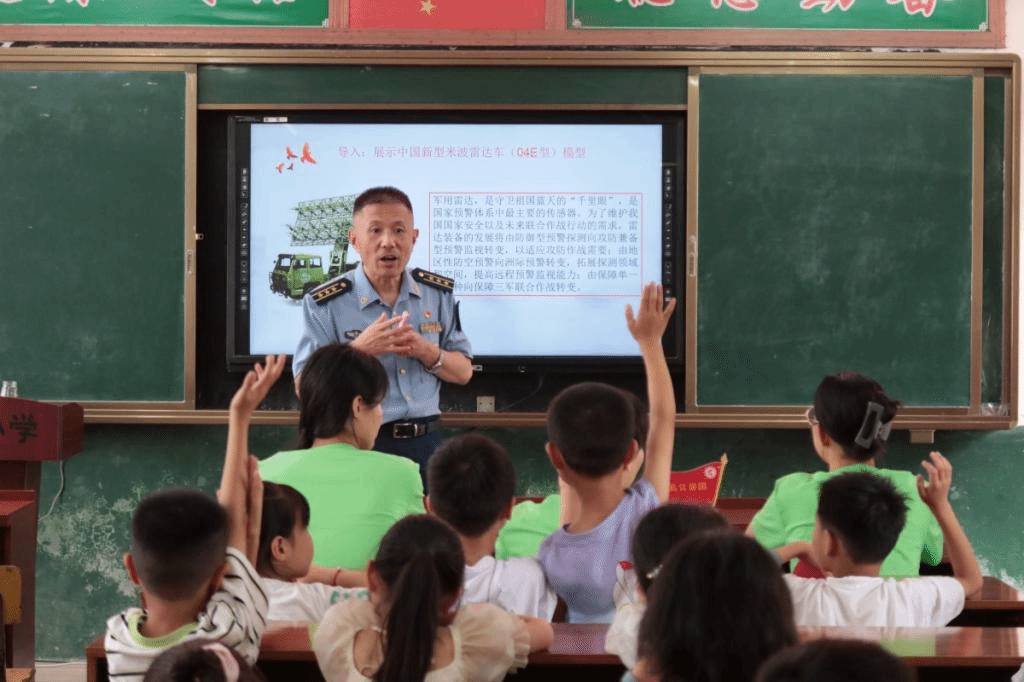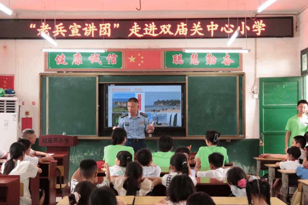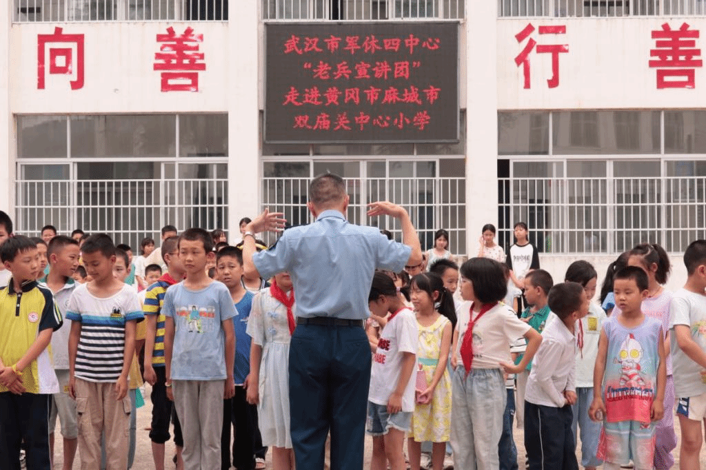 图为武汉市军休四所上校在晞辰公益队邀请下前往双庙关小学开展红色讲座 张琪琪摄